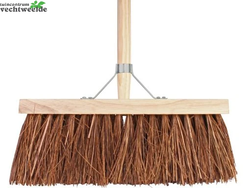 Deze bezem met natuurvezel haren, is geschikt voor buiten. Deze bezem is ideaal op ruwe oppervlaktes doordat de haren verschillende diktes hebben. Hij heeft een breedte van 37cm. De bezem is voorzien van een steel van 140cm. Ter ondersteuning is de steel met een verstevigingsbeugel aan de bezem gemonteerd. Voor een beter veegresultaat en een langere levensduur adviseren wij u de bezem voor gebruik in een emmer met water te zetten. Zet na gebruik de bezem niet met de haren op de grond. U kunt hem beter ophangen of met de steel op de grond zetten. Als u de bezem wel met de haren op de grond zet, heeft u kans dat de haren krom gaan staan en het gebruik niet meer optimaal is.