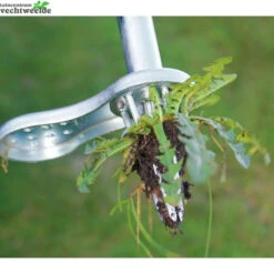 Deze onkruidsteker is geschikt voor het verwijderen van het grove onkruid zoals bijv.: de paardenbloem. U duwt de zwart knop die bovenaan de onkruidsteker zit naar beneden, daarna zet u de steker op het onkruid en duwt hem met uw voet naar beneden zodat u het opstapje nog boven de grond ziet. Daarna trekt u de zwarte knop omhoog en zoals u dan ziet heeft u het onkruid meegetrokken. Als u de knop dan weer naar beneden duwt valt het onkruid eruit. De totale lengte van de onkruidsteker is 90cm.